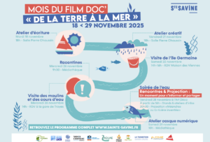AQUAE participe au « Mois du film doc » de Sainte-Savine. Le jeudi 26, l’association propose une promenade le long des « Cours d’eau et moulins » de Troyes ». Le vendredi 28, Pascal Goujard anime un échange avec des experts locaux suite à la projection du film de Marie Lusson et Emilien de Bortoli « Méandres, ou la rivière réinventée ». Nous sommes aussi présents dans l’espace « partenaires ».