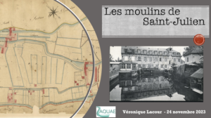 « Les moulins au territoire de Saint-Julien », par Véronique Lacour. Présentation de l’histoire des moulins de Sancey, de La Moline, Le Roy et Pétal. Conférence organisée par la Mairie de Saint-Julien-les-Villas à l’auditorium.